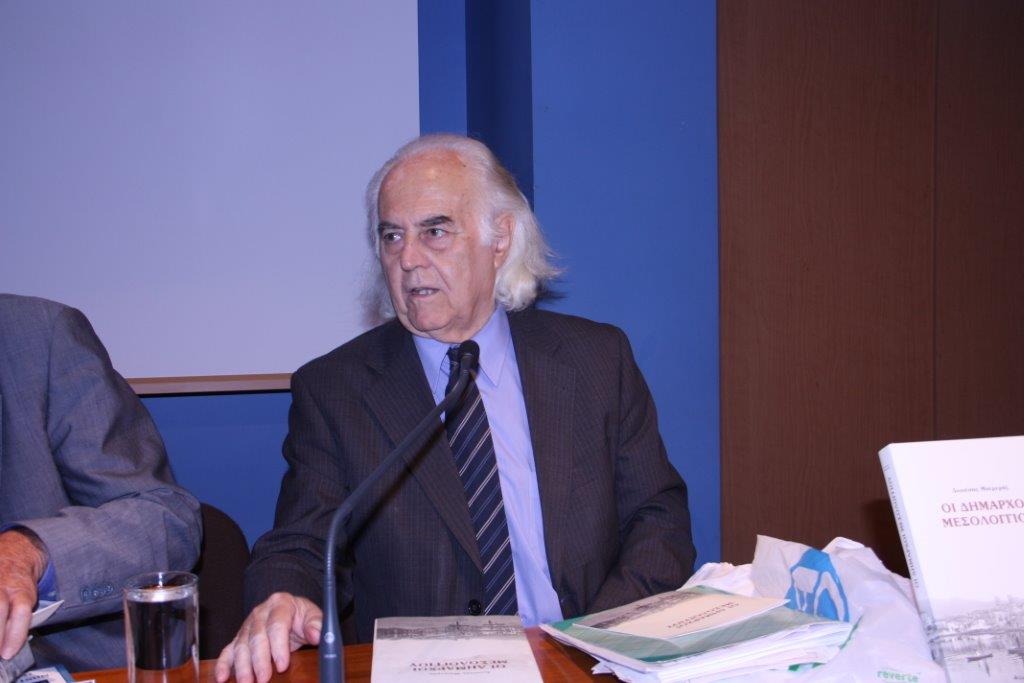 Η εκδήλωση άρχισε με σύντομο χαιρετισμό του Προέδρου του Συλλόγου Μεσολογγιτών Αττικής Αντιστρατήγου ε.α., Γεωργίου Αντύπα και στη συνέχεια σε ένα μεγάλο ακροατήριο με Συντονιστή της παρουσίασης τον πανεπιστημιακό καθηγητή Παναγιώτη Κοντό μίλησαν για το βιβλίο, οι: Σπ. Βλαχόπουλος,καθηγητής της Νομικής Σχολής του Πανεπιστημίου Αθηνών, Παν. Σόμπολος,δημοσιογράφος, πρώην Πρόεδρος ΕΣΗΕΑ και Βασ. Ταλαμάγκας, δημοσιογράφος, Γεν. Δ/ντής Ειδήσεων της ΕΡΤ.
