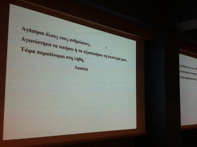 Στην κατάμεστη αίθουσα του Λόγου και τέχνης στη “Στοά του Βιβλίου” στην Αθήνα, ζωντάνεψαν μνήμες από την εκλεκτή Μεσολογγίτισσα, διακεκριμένη συγγραφέα και λειτουργό της παιδείας Ακακία Κορδόση.