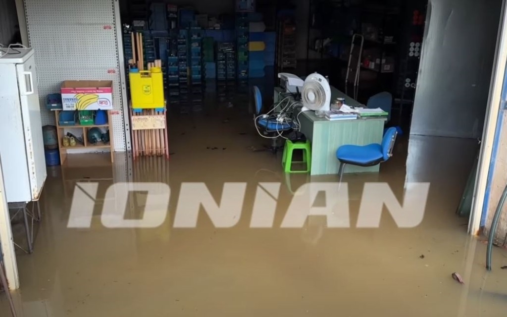 Ένας από τους πληγέντες της βροχόπτωσης δηλώνει ότι σημειώθηκε μεγάλη καταστροφή καθώς πλημμύρισε η αποθήκη του όπου μέσα είχε λάδια, εμπορεύματα και μηχανήματα.