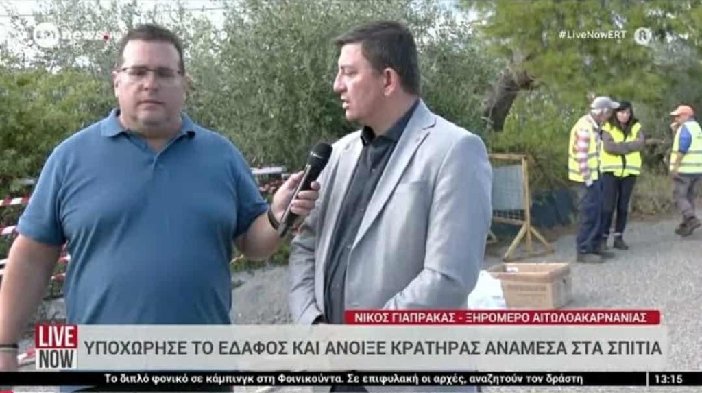 Πρώτο θέμα στα μεγάλα κανάλια ΕΡΤ Mega και ΣΚΑΪ η επικίνδυνη καθίζηση που σημειώθηκε στις Φυτείες Ξηρομέρου τα ξημερώματα της Τρίτης, 7 Οκτωβρίου.