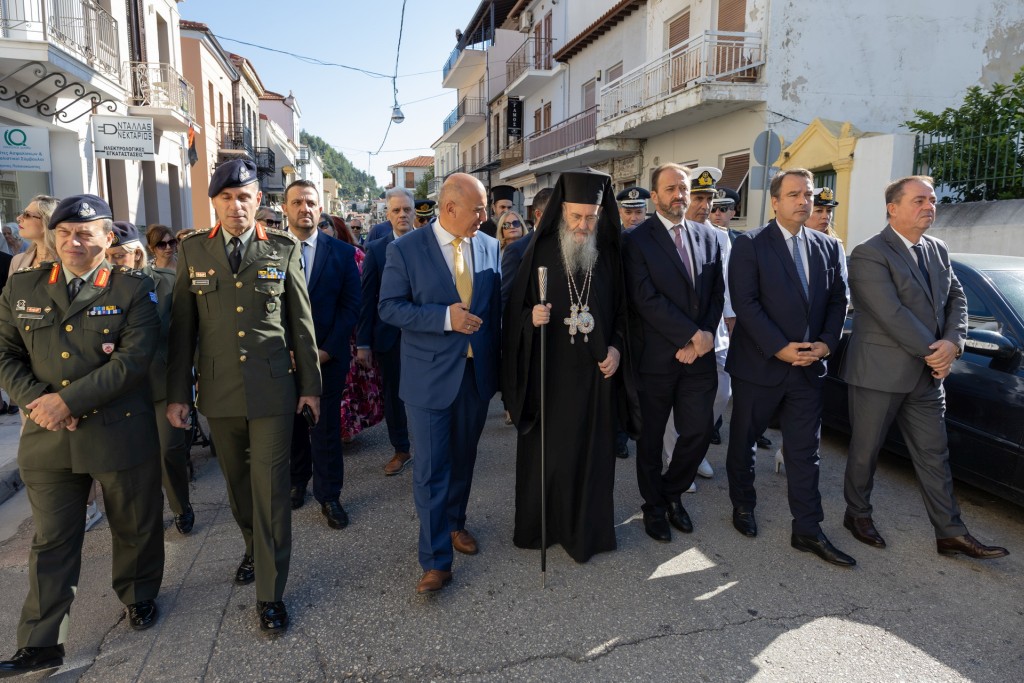 Μετά τη Δοξολογία, η πομπή της ιερής εικόνας κατευθύνθηκε προς το Ενετικό Λιμάνι, συνοδεία στρατιωτικού αγήματος, της Παπαχαραλαμπείου Δημοτικής Φιλαρμονικής Ναυπάκτου και εθελοντών, όπου τελέστηκε Επιμνημόσυνη Δέηση. Ακολούθως, πραγματοποιήθηκε τελετή ρίψης στεφάνων στη θάλασσα, ως ένδειξη τιμής και μνήμης προς τους πεσόντες της ιστορικής Ναυμαχίας του 1571.