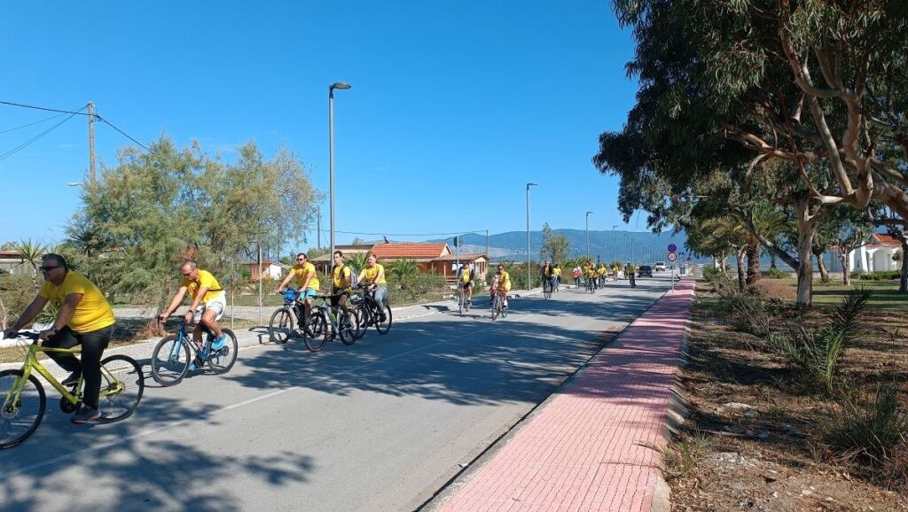 «Οι ποδηλάτες ξεκίνησαν τη διαδρομή τους από το ξενοδοχείο «Theoxenia» και τερμάτισαν στο κατάστημα «Tourlida Beach», όπου τους υποδέχθηκαν με χυμούς, καφέδες και γλυκίσματα που είχαν ετοιμαστεί ειδικά για την εκδήλωση από τους μαθητές της ΕΠΑΣ Μαθητείας Μεσολογγίου.