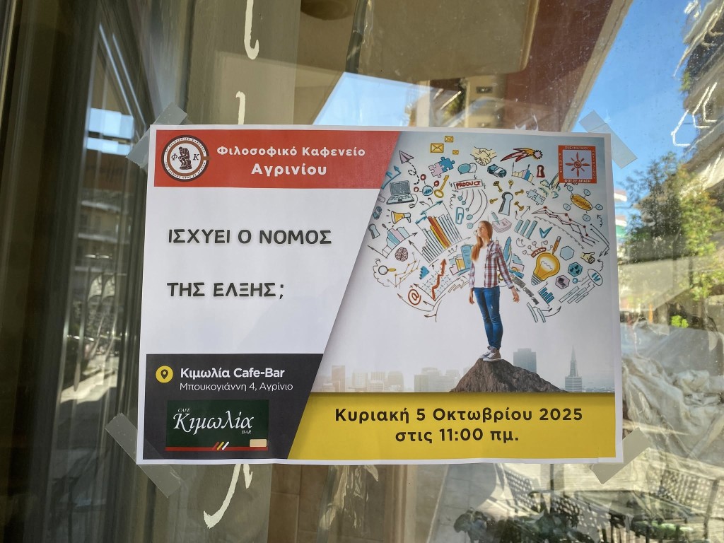 Την Κυριακή, 5 Οκτωμβρίου 2025 πραγματοποιήθηκε η πρώτη συνάντηση του ΦΙΛΟΣΟΦΙΚΟΥ ΚΑΦΕΝΕΙΟΥ ΑΓΡΙΝΙΟΥ ΤΗΣ ΚΙΝΗΣΗΣ "ΦΩΣ ΣΕ ΔΡΑΣΗ" για την σεζόν 2025-2026.