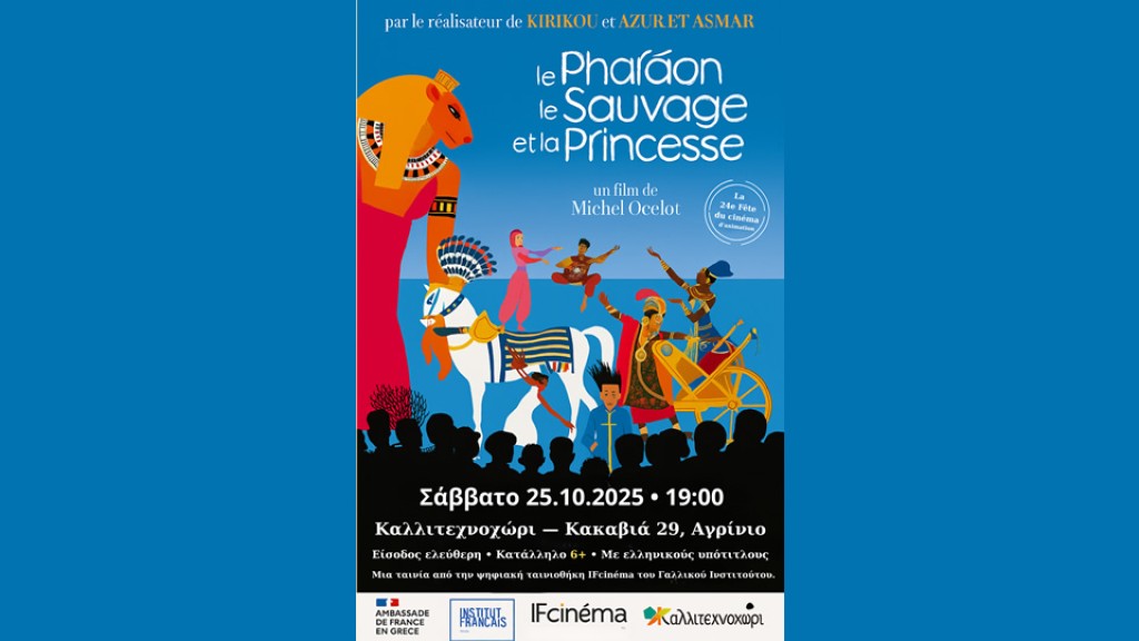 Το Καλλιτεχνοχώρι συμμετέχει στο 24ο Φεστιβάλ Κινηματογράφου Κινουμένων Σχεδίων (AFCA) και παρουσιάζει την οικογενειακή ταινία animation του πολυβραβευμένου Michel Ocelot, Le Pharaon, le Sauvage et la Princesse (Ο Φαραώ, ο Άγριος και η Πριγκίπισσα), το Σάββατο 25 Οκτωβρίου, στις 19:00.
