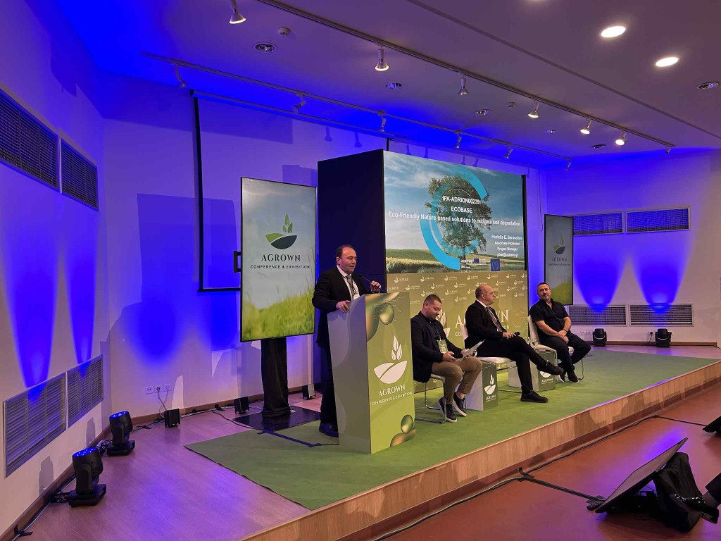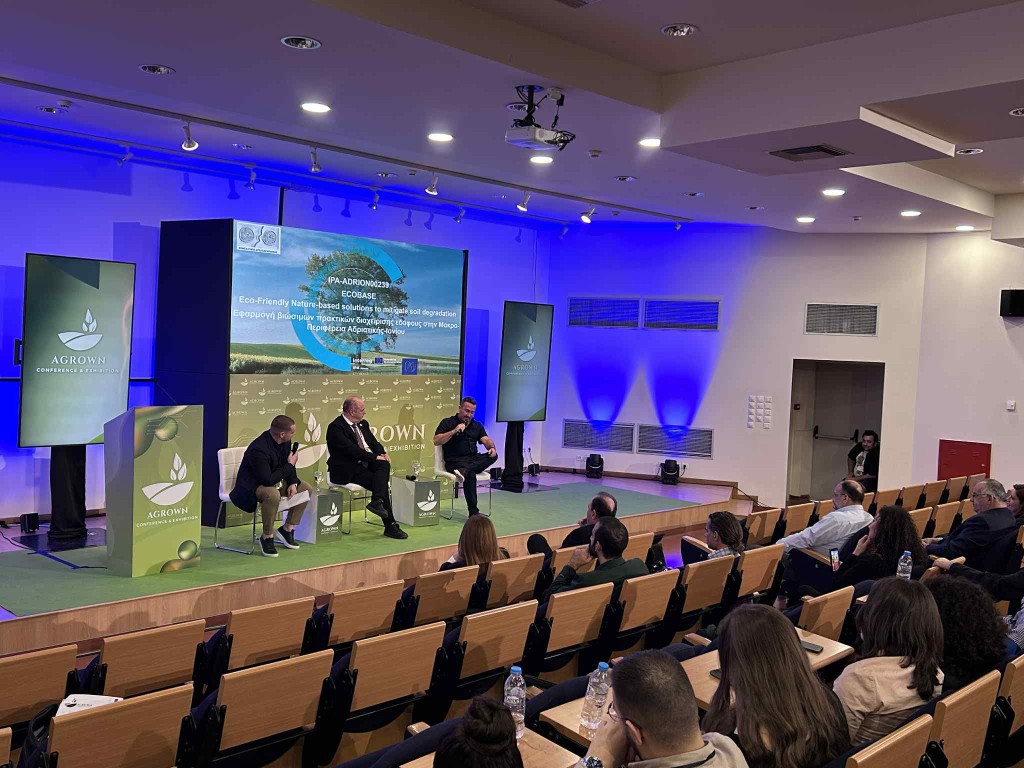 Οι ομιλητές παρουσίασαν το έργο ECOBASE, το οποίο υποστηρίζεται από το πρόγραμμα Interreg IPA ADRION και που επιδιώκει να καταπολεμήσει την υποβάθμιση του εδάφους, να προάγει τη βιώσιμη περιφερειακή ανάπτυξη, την περιβαλλοντική αειφορία και τη βιοποικιλότητα, συμβάλλοντας στη βελτίωση της ποιότητας και της ασφάλειας των αγροτικών προϊόντων παρέχοντας καινοτόμα εργαλεία για τους υπεύθυνους χάραξης πολιτικής, τους επιχειρηματίες του αγροδιατροφικού τομέα και τους αγρότες.