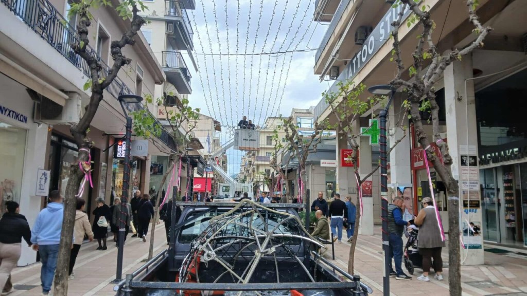 Όσοι περνούσαν το πρωί της Δευτέρας (3.11.25) από την Παπαστράτου αντίκριζαν γερανοφόρο και άλλα οχήματα του Δήμου. Το προσωπικό τοποθετούσε το φωτεινό διάκοσμο που πολύ σύντομα θα αλλάξει την όψη της πόλης.