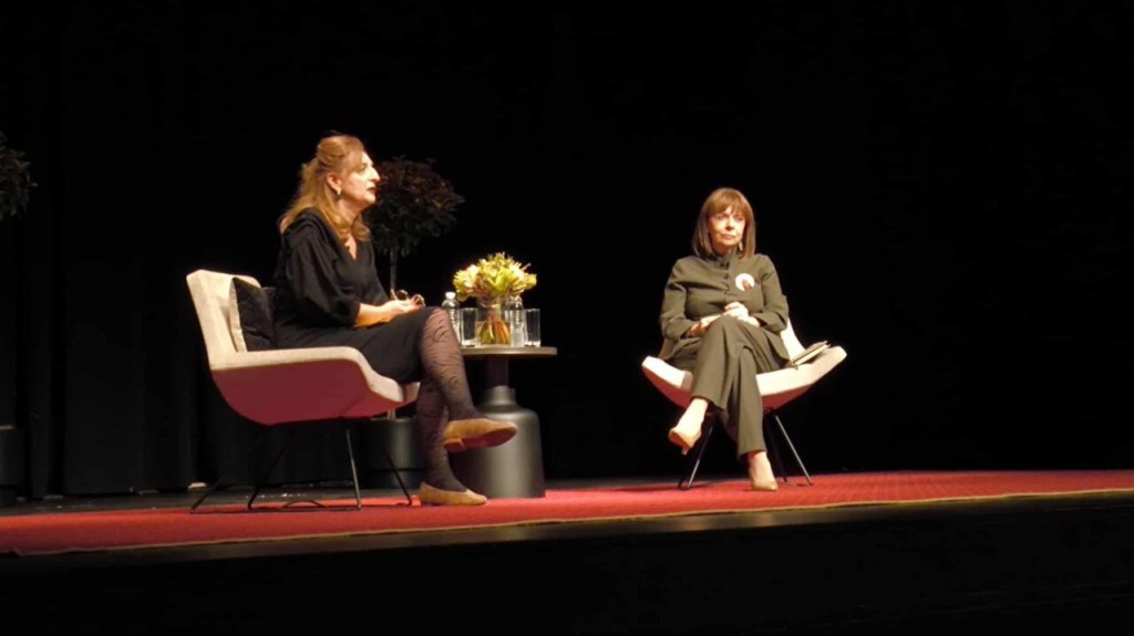 Η κα. Σακελλαροπούλου ήρθε στο Αγρίνιο για να μοιραστεί με το κοινό τις εμπειρίες και τα βιώματά της, να συνομιλήσει ανοιχτά για τη δημόσια διαδρομή της και να πραγματοποιήσει έναν στοχαστικό διάλογο γύρω από την έννοια της «Εξόδου», της προσωπικής, της κοινωνικής και της συλλογικής «Εξόδου».