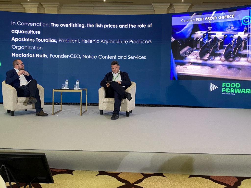 Στο 1ο Συνέδριο Food Forward from Farm to Table, η υπεραλίευση, οι τιμές των ψαριών εκτροφής κ ο ρόλος της ελληνικής ιχθυοκαλλιέργειας, συζητήθηκαν από τον Απόστολο Τουραλιά, Πρόεδρο ΕΛΟΠΥ, και το Νεκτάριο Νώτη, CEO Notice Content & Services, εμπνευστή του Συνεδρίου. Η ΕΛΟΠΥ, προσέφερε δείπνο με φρέσκα ελληνικά ψάρια εκτροφής Fish from Greece, μαγειρεμένα με Ασιατικό twist.