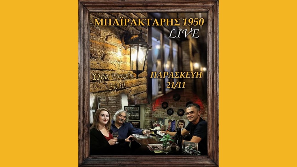 Κάθε Παρασκευή βράδυ απολαύστε το φαγητό σας στην Ταβέρνα "ΜΠΑΪΡΑΚΤΑΡΗΣ" στο Αγρίνιο σε ζεστό ατμοσφαιρικό περιβάλλον με ζωντανή μουσική.