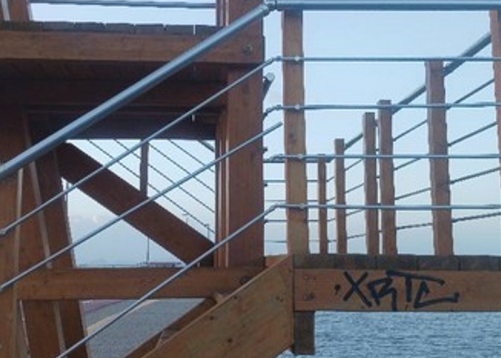 Ανεγκέφαλοι προκάλεσαν σοβαρές φθορές σε ένα από τα παρατηρητήρια στο δρόμο της Τουρλίδας. Έσπασαν μερικά από τα κάγκελα και τα πέταξαν στη θάλασσα.