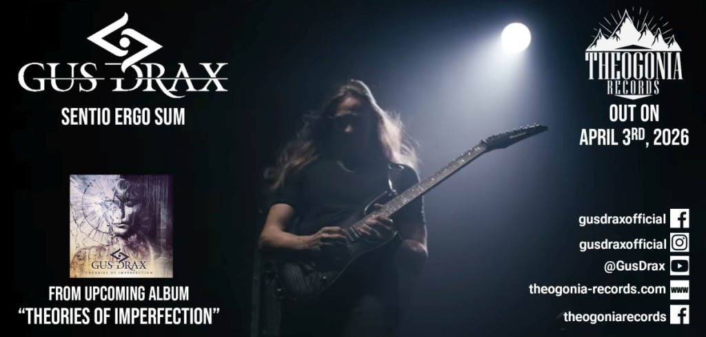 Η Theogonia Records με υπερηφάνεια ανακοινώνει ότι σήμερα, το πρώτο single και μουσικό βίντεο από το επερχόμενο ορχηστρικό άλμπουμ του Gus Drax " Theories of Imperfection " κυκλοφόρησε επίσημα. Το εναρκτήριο κομμάτι του άλμπουμ, " Sentio Ergo Sum ", είναι πλέον διαθέσιμο αποκλειστικά στο YouTube για τους θαυμαστές παγκοσμίως.