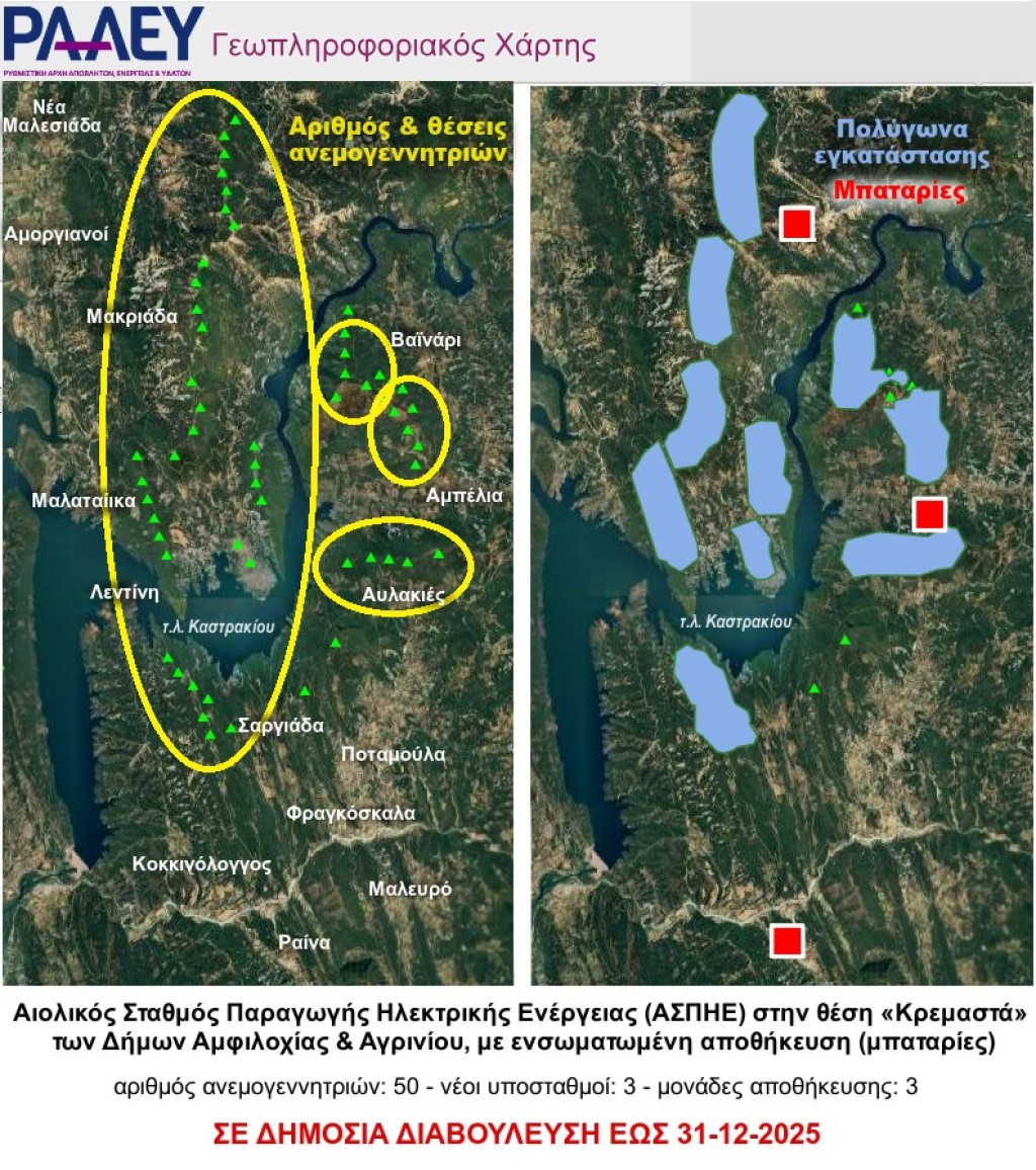 Η συζήτηση στο δημοτικό συμβούλιο έγινε ενόσω έχει τεθεί σε δημόσια διαβούλευση έως τις 31-12-25 στο Ηλεκτρονικό Περιβαλλοντικό Μητρώο (ΗΠΜ) η Μελέτη Περιβαλλοντικών Επιπτώσεων (ΜΠΕ) του Αιολικού Σταθμού Παραγωγής Ηλεκτρικής Ενέργειας (ΑΣΠΗΕ) μέγιστης ισχύος λειτουργίας 112.5 MW με τα συνοδά έργα αυτού και με σταθμούς αποθήκευσης ηλεκτρικής ενέργειας, της πέριξ της τεχνητής λίμνης Καστρακίου και στα Κρεμαστά. Κατασκευάστρια εταιρεία είναι «ΕΥΡΟΣ ΕΝΕΡΓΕΙΑΚΗ ΙΚΕ».