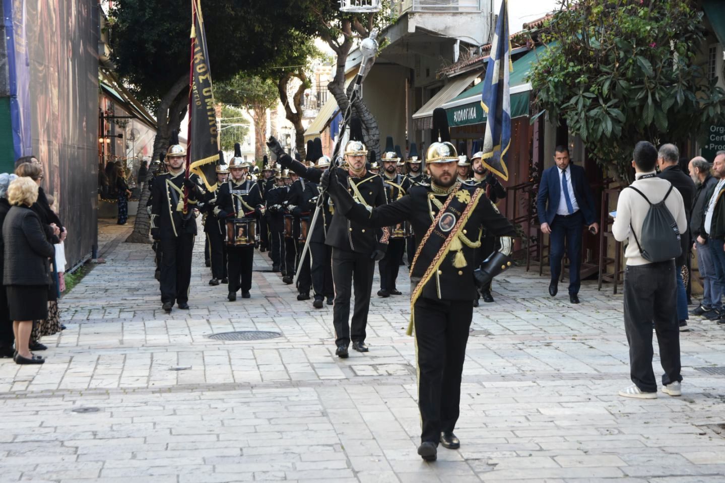 Ακολούθησε η καθιερωμένη λιτάνευση της ιερής εικόνας στους δρόμους της πόλης, με τη συμμετοχή και των τριών Φιλαρμονικών του Μεσολογγίου, στρατιωτικού αγήματος, εκπροσώπων συλλόγων και φορέων και σημαιοφόρων μαθητών από σχολεία της περιοχής. Η λιτανευτική πομπή κατέληξε στην κεντρική πλατεία, όπου τελέστηκε η καθιερωμένη αρτοκλασία υπέρ των Αρχών και του λαού.