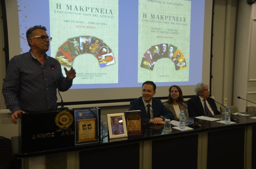 Σε συγκινησιακό κλίμα πραγματοποιήθηκε, την Τετάρτη 10 Δεκεμβρίου, στο Αμφιθέατρο «Αντώνης Τρίτσης» του Πνευματικού Κέντρου του Δήμου Αθηναίων, η επίσημη παρουσίαση του νέου ιστορικού έργου του αείμνηστου Δημητρίου Β. Αλεξανδρή με τίτλο: «Η Αιτωλία και η Ακαρνανία πριν και κατά την Οθωμανοκρατία (1204–1829) – Σαντζάκια Κάρλελι και Ναυπάκτου».