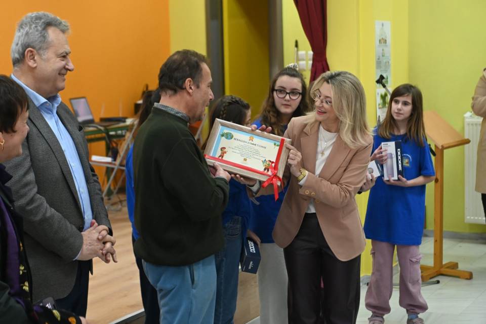 Η εκδήλωση ολοκληρώθηκε με την απονομή αναμνηστικού δώρου στον Διευθυντή του σχολείου κ. Παναγιώτη Μποκόρο, ως ένδειξη ευχαριστίας για τη συμμετοχή και τη φιλοξενία του 7ου Δημοτικού Σχολείου στην μεγάλη γιορτή της Ανακύκλωσης.