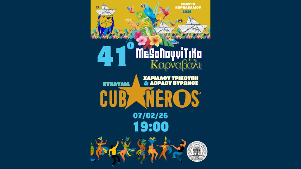 Η αυλαία των φετινών εκδηλώσεων ανοίγει το Σάββατο 7 Φεβρουαρίου 2026, στις 19:00, στη συμβολή των οδών Χαριλάου Τρικούπη & Λόρδου Βύρωνος, με μια δυναμική συναυλία των Cubaneros, που θα ξεσηκώσει το κοινό με ρυθμούς και χορευτική ενέργεια.