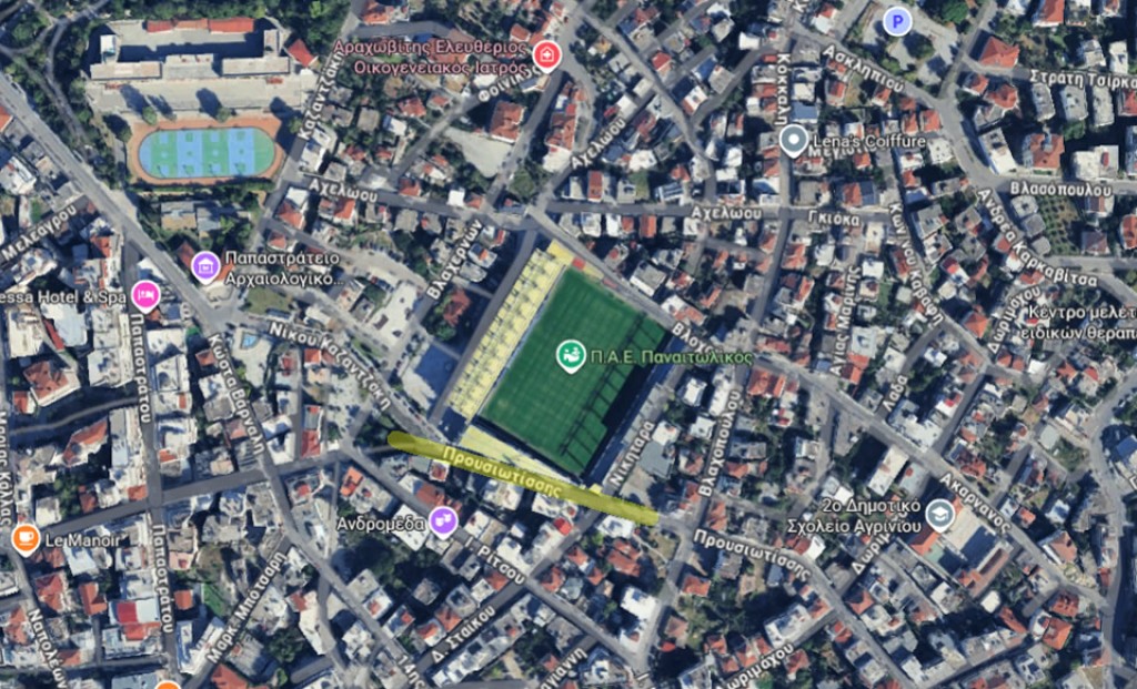 Δήμος Αγρινίου ενημερώνει τους πολίτες ότι, στο πλαίσιο κατασκευής του έργου «ΑΝΑΠΛΑΣΗ ΟΔΟΥ ΠΡΟΥΣΙΩΤΙΣΣΗΣ ΚΑΙ ΚΟΙΝΟΧΡΗΣΤΩΝ ΧΩΡΩΝ ΠΕΡΙΞ ΤΟΥ ΓΗΠΕΔΟΥ ΠΑΝΑΙΤΩΛΙΚΟΥ» και σύμφωνα με την εγκεκριμένη μελέτη (αρ. πρωτ. Σύμβασης 3813/02-02-2026), θα πραγματοποιηθούν εργασίες ανάπλασης και ανακατασκευής της οδού Προυσιωτίσσης, στο τμήμα δίπλα από το γήπεδο του Παναιτωλικού.