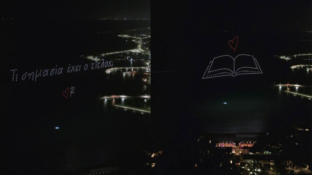 Με κεντρικό μήνυμα «Να σου διαβάσω ένα βιβλίο στ’ αστέρια», η Ρενέ Στυλιαρά σε συνεργασία με την DRNS, ετοίμασαν ένα πρωτοποριακό event που μαγνήτισε τα βλέμματα. Εκατοντάδες drones απογειώθηκαν για να σχηματίσουν λέξεις και εικόνες, δίνοντας ζωή στις σελίδες του νέου της βιβλίου και φωτίζοντας τη νύχτα των ερωτευμένων.
