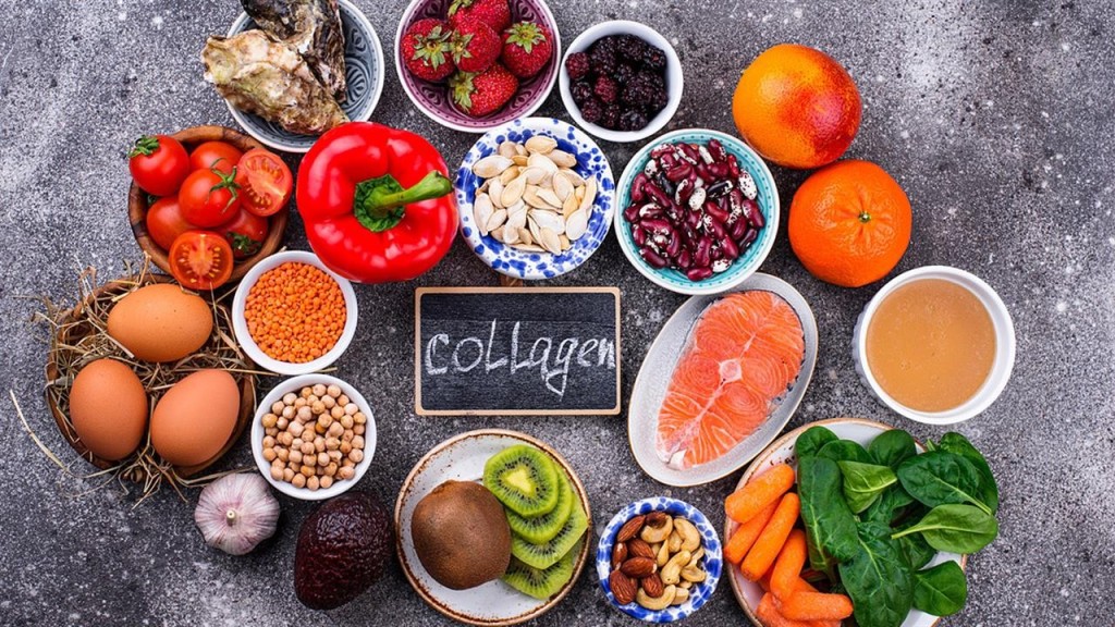 Πολλές τροφές ζωικής προέλευσης είναι πλούσιες σε κολλαγόνο, ενώ οι φυτικές τροφές, αν και δεν περιέχουν κολλαγόνο, προσφέρουν τα θρεπτικά συστατικά, τα «δομικά στοιχεία» (αμινοξέα, βιταμίνη C και μέταλλα) που χρειάζεται ο οργανισμός για να το παράγει.