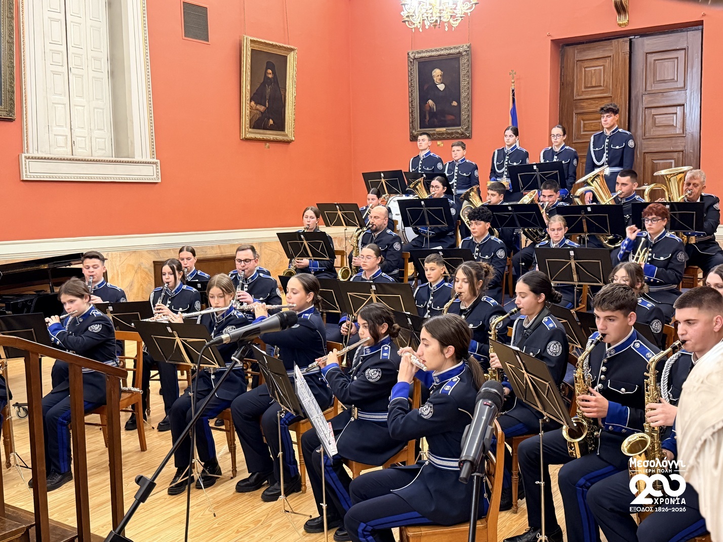 Η πλέον επιβλητική στιγμή σημειώθηκε στο κλείσιμο της βραδιάς, όταν η Φιλαρμονική απέδωσε τόσο τον Ακάθιστο όσο και τον Εθνικό Ύμνο. Σύσσωμο το ακροατήριο σηκώθηκε όρθιο, τιμώντας με αυτόν τον μεγαλοπρεπή τρόπο την επέτειο των 200 ετών από τη θυσία των Εξοδιτών.