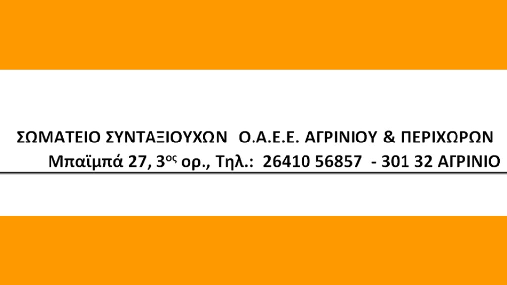 Μετά τις αρχαιρεσίες της 29.03.2026, το Σωματείο Συνταξιούχων Αγρινίου κ΄ Περιχώρων ανακοινώνει τη σύνθεση του νέου Δ.Σ: