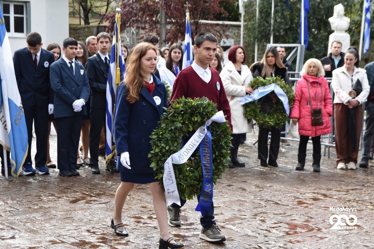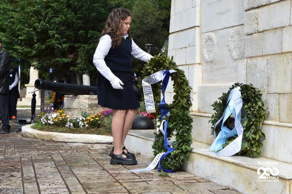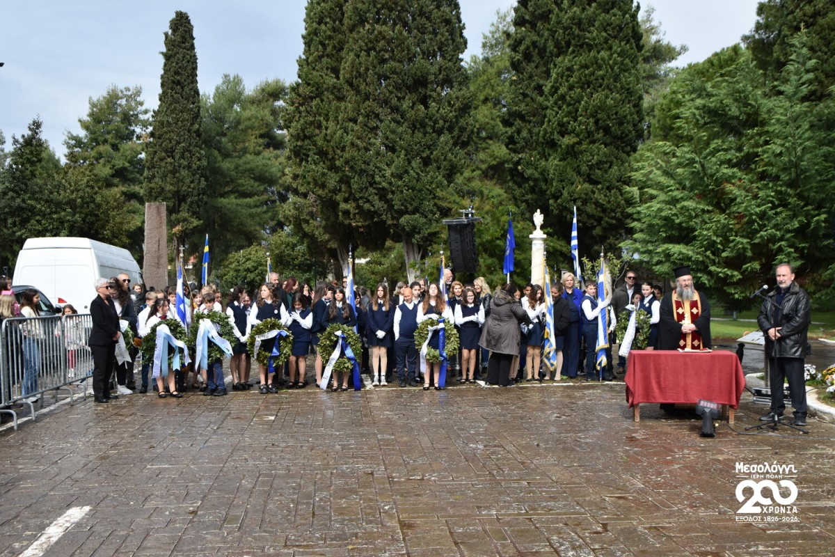 Στον Ιερό χώρο του Τύμβου των Ηρώων στον Κήπο των Ηρώων, πραγματοποιήθηκε η τελετή κατάθεσης στεφάνων. Η συμμετοχή της νέας γενιάς της πόλης μας αποτελεί την κορυφαία στιγμή της σημερινής ημέρας, υπογραμμίζοντας τη διατήρηση της ιστορικής μνήμης και των αξιών της αυτοθυσίας και της ελευθερίας που συμβολίζει η ηρωική Έξοδος.