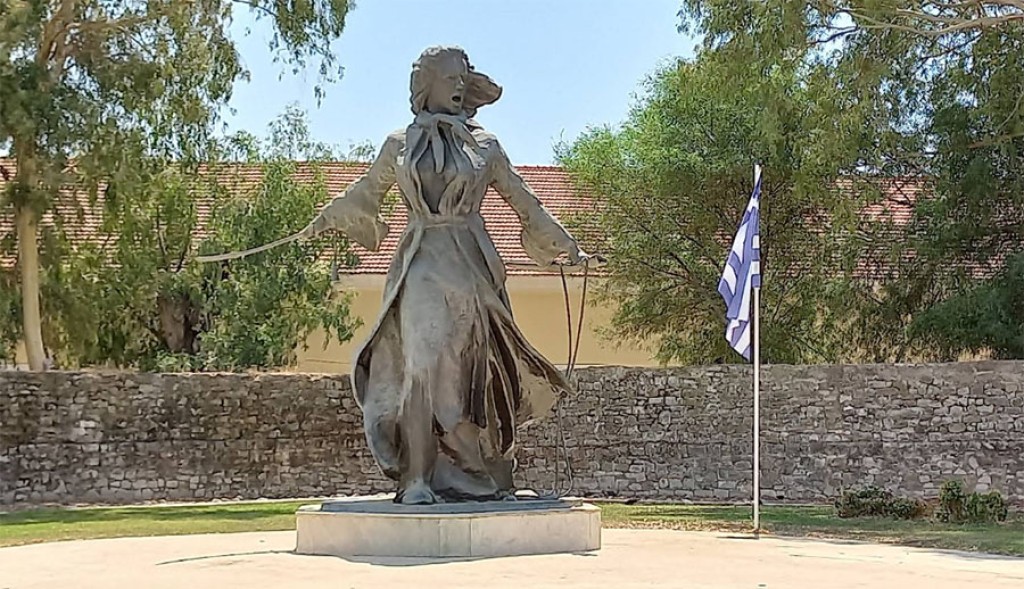 Το άγαλμα, ύψους 5 μέτρων, είναι έργο του Κύπριου γλύπτη Νίκου Κοτζιαμάνη και αποτελεί προσφορά του Δημήτρη και της Ελένης Τάσσιου, δύο Ελλήνων Ομογενών με καταγωγή από την Ευρυτανία, οι οποίοι διαμένουν στην Βόρεια Καρολίνα στις ΗΠΑ.