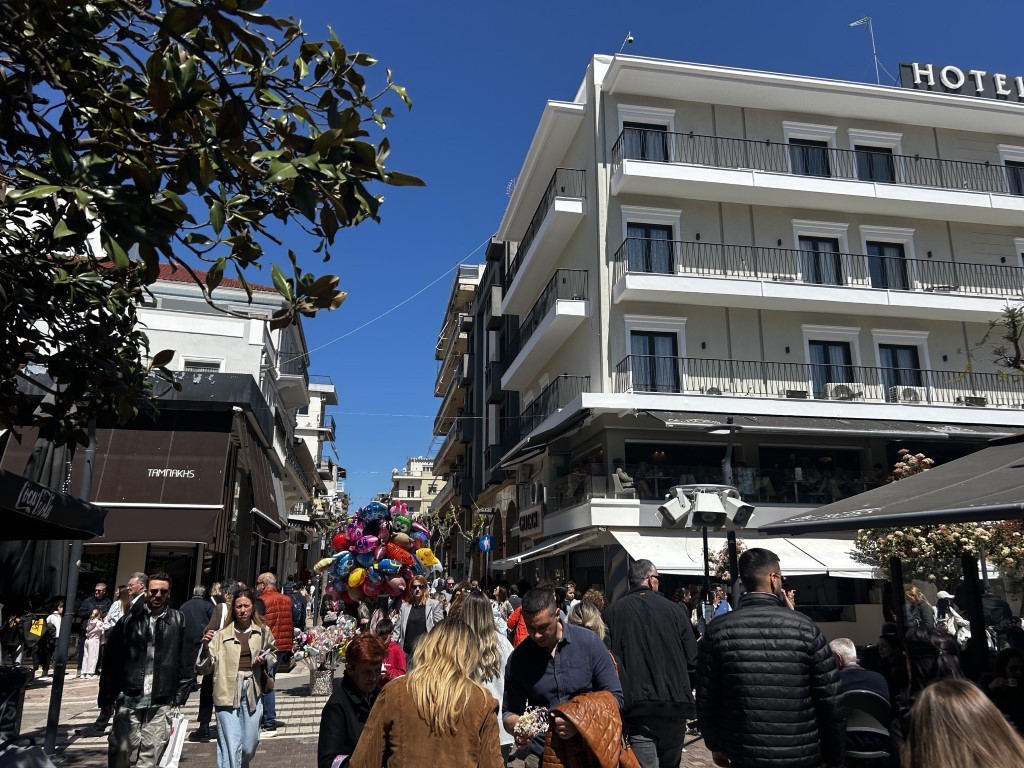 Με «σύμμαχο» τον εξαιρετικό καιρό, πλήθος κόσμου σπεύδει για τις τελευταίες αγορές πριν την Κυριακή του Πάσχα και για να απολαύσει τον καφέ και το φαγητό ή την μεσημεριανή μπυρίτσα/κρασάκι στα καταστήματα του Αγρινίου.