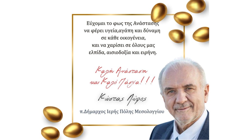 Με αυτές τις σκέψεις, εύχομαι σε όλες και όλους Καλή Ανάσταση και Καλό Πάσχα, με υγεία, δύναμη και αισιοδοξία.
