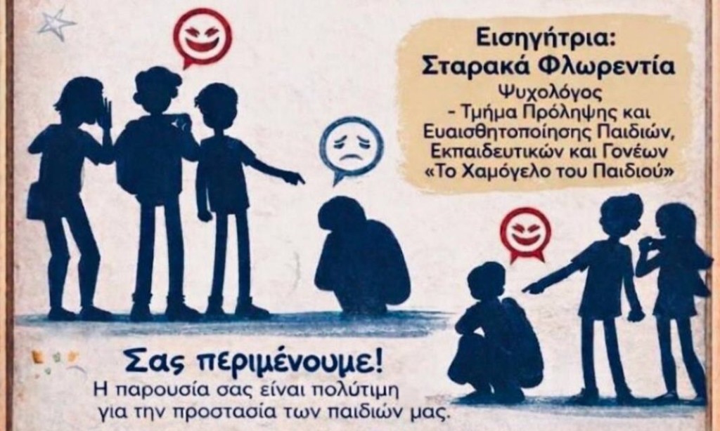 Η εκδήλωση απευθύνεται σε γονείς και κηδεμόνες και στόχο έχει την ενημέρωση, την πρόληψη και την ενίσχυση της συνεργασίας σχολείου και οικογένειας για την προστασία των παιδιών από φαινόμενα σχολικού εκφοβισμού.