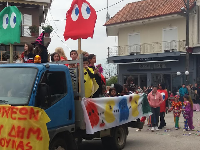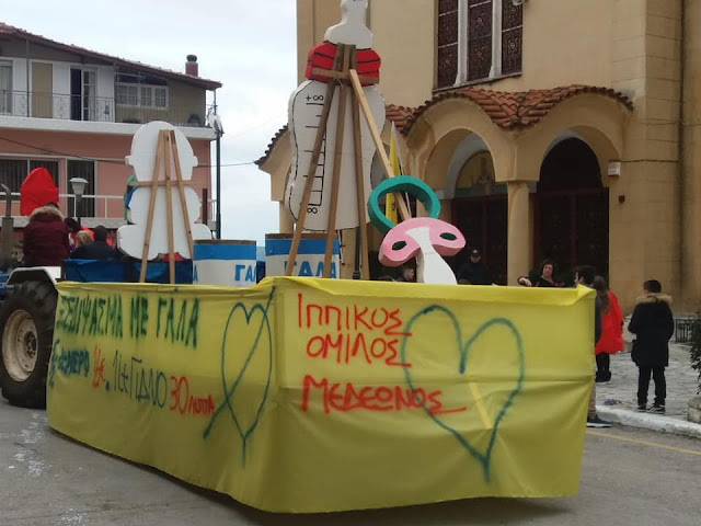 Οι μασκαράδες και τα άρματα παρέλασαν με ρυθμό και ζωντάνια στον κεντρικό δρόμο του χωριού, δίνοντας τον αποκριάτικο τόνο....
