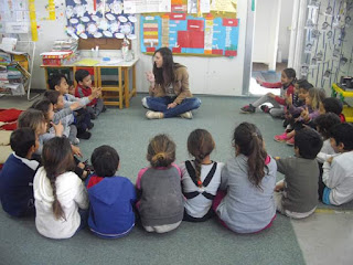 Εν όψει της αυριανής Παγκόσμιας Ημέρας Παιδικού Βιβλίου, η συγγραφέας μας το πρωί της Τετάρτης 28 Μαρτίου 2018, πραγματοποίησε μια εισβολή στο νηπιαγωγείο της Γαρυφαλιάς Παπασωτήρη, που βρίσκεται στο συνοικισμό των Ρομά, πίσω από το Δημοτικό Στάδιο Αγρινίου και κατενθουσιάστηκε από τα όμορφα πράγματα που δημιουργεί η νηπιαγωγός με τα 25 αστεράκια της.