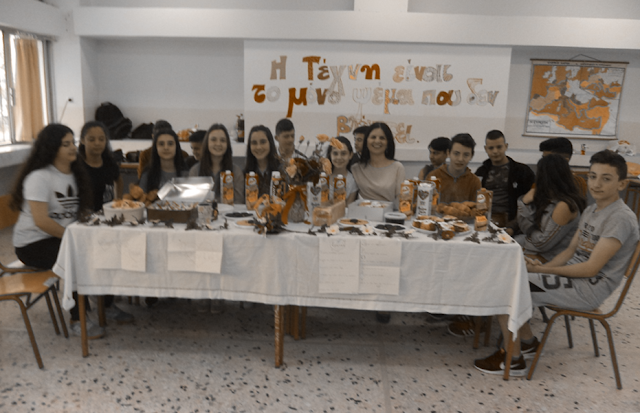 Mετά από όλη αυτή την ευχάριστη και δημιουργική επαφή των μαθητών με τα Δημοτικά τραγούδια του Έρωτα και της Αγάπης φτάσαμε στην τελευταία ημέρα της Θ.Ε. Οι μαθητές/τριες του Β1 είχαν μια ωραία ιδέα: Να διοργανώσουν, για το πρώτο δίωρο της Παρασκευής που είχαμε μαζί, ένα «αγαπησιάρικο» πρωϊνό με γλυκά, χυμούς και διάφορα καλούδια. Και φυσικά με ωραία μουσική και συζήτηση.