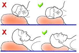 Το μαξιλάρι, θα πρέπει να είναι σχετικά λεπτό ώστε να μη φέρνει τον αυχένα σε κάμψη (δηλαδή το σαγόνι να τείνει να ακουμπήσει το στήθος.