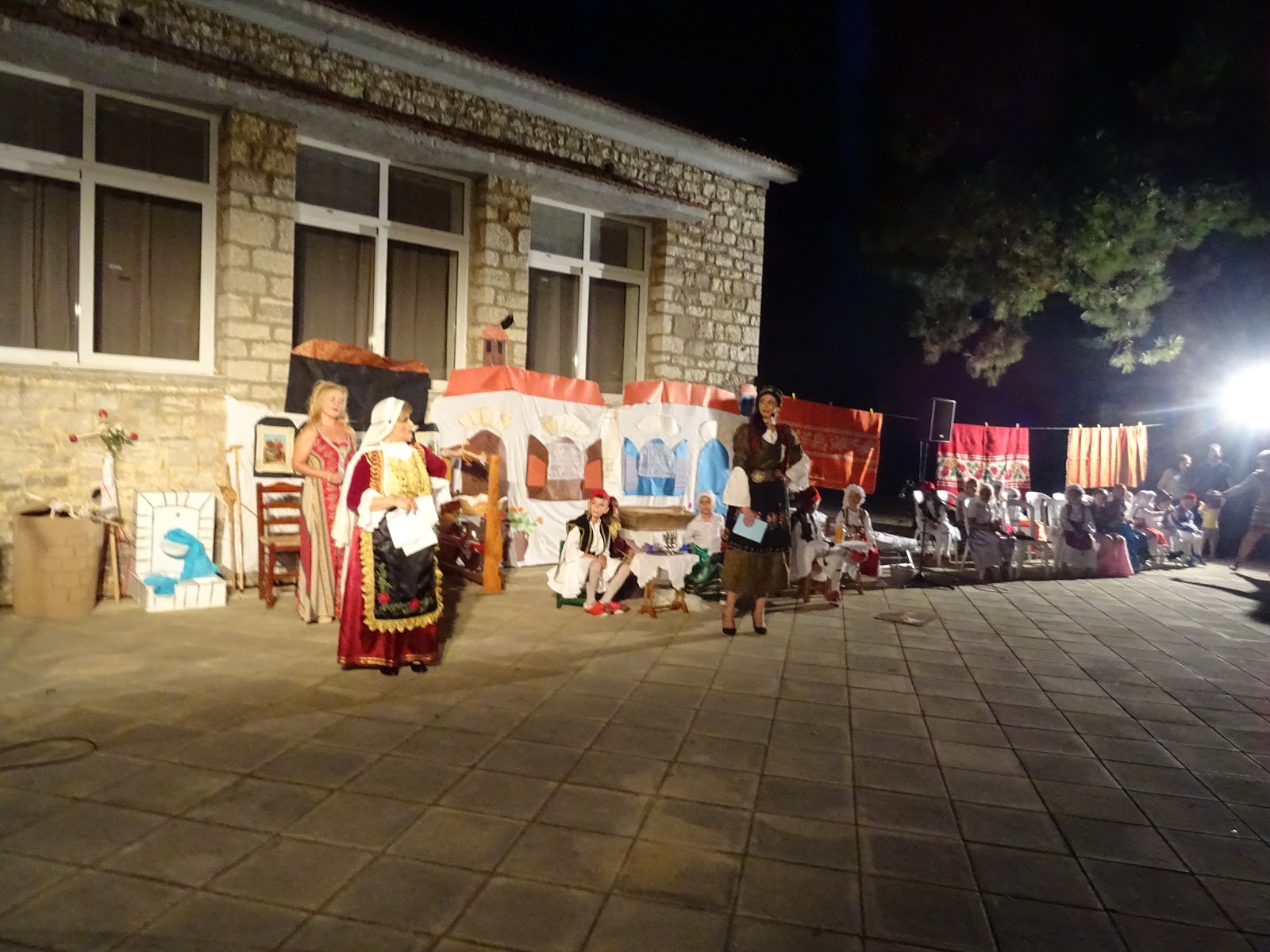Μετά τον χαιρετισμό του Προέδρου, ακολούθησαν τα καλωσορίσματα και οι ευχαριστίες της Ελένης Δημητρέλλου και της Αριάδνης Δάντε προς τους καλεσμένους και το θεατρικό δρώμενο ξεκίνησε με την περίληψη "τς Λένς τ' Πλατανίτ" για όλα όσα προηγήθηκαν μέχρι τη βραδιά της 3ης Αυγούστου.