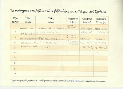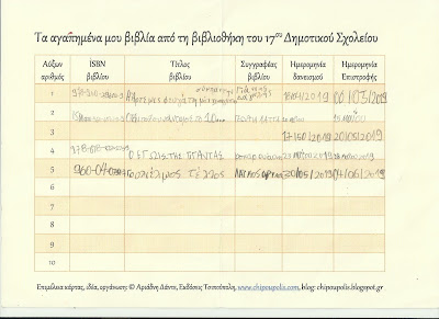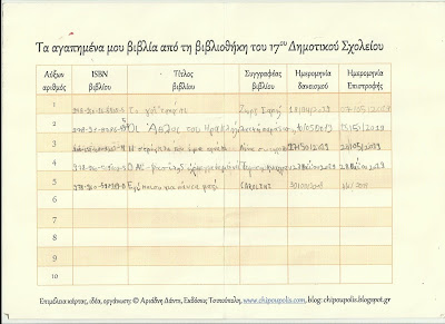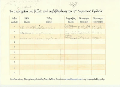 Ακόμη θυμάμαι το διστακτικό κορίτσι που στις αρχές του Μάρτη ζήτησε τον αριθμό του τηλεφώνου μου από τη φίλη και εξαιρετική νηπιαγωγό του 21ου Νηπιαγωγείου Αγρίνιου, κυρία Αντωνία Στελιανού, για να οργανώσουμε μια δράση φιλαναγνωσίας (μπορείτε να διαβάσετε ένα σχετικό άρθρο στην ηλεκτρονική διεύθυνση: http://chipoupolis.blogspot.com/2019/04/blog-post.html) και να βάλουμε τα θεμέλια λειτουργίας της δανειστικής βιβλιοθήκης του Δημοτικού. Και το εκπαιδευτικό διαμάντι που ακούει στο ονοματεπώνυμο "Ελένη Μάντζιου" αποδείχθηκε σωστός θησαυρός για μένα, μιας και οι μεταμεσονύχτιες συζητήσεις μας δεν μας οδήγησαν μόνο στη διοργάνωση μιας δράσης, αλλά σε ένα μεγαλόπνοο έργο εξαετούς διάρκειας (όσο και η μαθητεία των παιδιών στην Πρωτοβάθμια εκπαίδευση) για τη μύηση των σαράντα λιλιπούτειων μαθητών στον υπέροχο κόσμο της Λογοτεχνίας και στις σχεσιακές βάσεις δεδομένων.