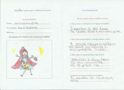 -"Αν ήμουνα μέσα στην ιστορία θα ήμουν η Κοκκινοσκουφίτσα. Θα έκανα καλά τη γιαγιά και θα τη φρόντιζα.",