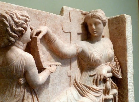 Ένα ελληνικό γλυπτό, ανάγλυφο του 1ου π.Χ., αιώνα έχει ενθουσιάσει τους ερευνητές των «μυστηρίων» αφού θεωρούν ότι βλέπουν σε αυτό μια γυναίκα να κοιτά την οθόνη ενός φορητού υπολογιστή!