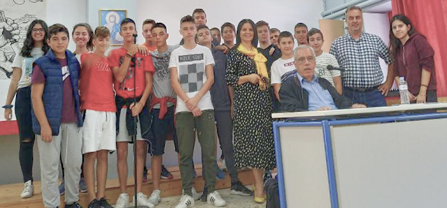 Μας πρότεινε κάποια βιβλία του Καζαντζάκη να διαβάσουμε, να μάθουμε περισσότερα. Η επίσκεψή του ήταν πολύ ευχάριστη, εκπαιδευτική και πολύ ενημερωτική. Είναι ένας τόσο σπουδαίος άνθρωπος!