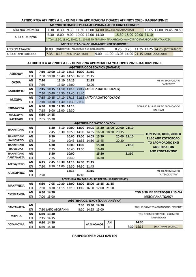 Τα νέα δρομολόγια του Αστικού ΚΤΕΛ Αγρινίου από την Δευτέρα 18 Μαΐου (πίνακας)