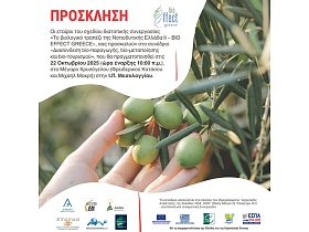 ΠΡΟΣΚΛΗΣΗ Οι εταίροι του σχεδίου διατοπικής συνεργασίας «Το βιολογικό τραπέζι της Νοτιοδυτικής Ελλάδα ΙΙ – ΒΙΟ EFFECT GREECE », σας προσκαλούν στο συνέδριο «Διασύνδεση bio-παραγωγής, bioμεταποίησης και bio-τουρισμού», που θα πραγματοποιηθεί στις 22 Οκτωβρίου 2025 (ώρα έναρξης 10:00 π.μ.), στο Μέγαρο Χρυσόγελου (Φρειδερικού Κατάσου και Μιχαήλ Μακρή) στην Ι.Π. Μεσολογγίου. Το συνέδριο υλοποιείται στο πλαίσιο του Προγράμματος "Αγροτικής Ανάπτυξης της Ελλάδας 2014 -2020" (ΠΑΑ), Μέτρο 19, Υπομέτρο…