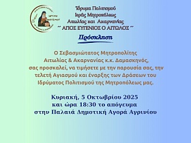 Ο μήνας Οκτώβριος σηματοδοτεί κάθε χρόνο την έναρξη των Κατηχητικών Σχολείων και όλων των ιεραποστολικών δραστηριοτήτων της Ιεράς Μητροπόλεώς μας. Η τοπική μας Εκκλησία με αίσθημα ευθύνης προετοίμασε την Κατηχητική χρονιά 2025 - 2026. Με την μέριμνα και την καθοδήγηση του Σεβασμιωτάτου Μητροπολίτου Αιτωλίας και Ακαρνανίας κ. Δαμασκηνού και τις ενέργειες των Υπευθύνων Ιερέων Νεότητος συστήθηκαν και θα λειτουργήσουν Κατηχητικά Σχολεία σε όλες τις μεγάλες και κεντρικές Ενορίες της Ιεράς…
