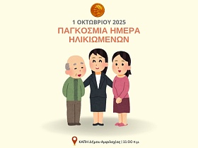 Πρόσκληση στις εορταστικές εκδηλώσεις του ΚΑΠΗ Ιερής Πόλης Μεσολογγίου Ολόκληρο τον Οκτώβριο «Γιορτάζουμε τα χρόνια μας»! Ο Αντιδήμαρχος Διοικητικών Υπηρεσιών & Κοινωνικής Προστασίας Δήμου Ιερής Πόλης Μεσολογγίου, Δημήτρης Ράπτης, προσκαλεί με μεγάλη χαρά τα μέλη και τους φίλους του ΚΑΠΗ να γιορτάσουμε μαζί ολόκληρο τον Οκτώβριο με εκδηλώσεις που φέρνουν χαρά, δημιουργικότητα και κοινωνική επαφή σε κάθε μέλος της κοινότητάς μας! Ξεκινάμε την 1η Οκτωβρίου, με ένα ζωντανό και διασκεδαστικό ΚΑΠΗ…