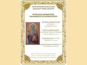 Συνεχίζονται οι αγιολογικές διαλέξεις στον Ιερό Μητροπολιτικό Ναό Ζωοδόχου Πηγής Αγρινίου, με γενικό τίτλο «Αγίων Επίσκεψις 2», οι οποίες είναι αφιερωμένες σε νεοφανείς Αγίους της εποχής μας. Σκοπός των συνάξεων αυτών είναι να αντλήσουμε διδάγματα ζωής από τους νέους Αγίους της Εκκλησίας μας που έζησαν ανάμεσά μας και μας δείχνουν τον δρόμο και την πορεία και για την δική μας αγιότητα. Την Δευτέρα 16 Φεβρουαρίου 2026, στις 6:00’ το απόγευμα, ο Πανοσιολογιώτατος Αρχιμανδρίτης Δημήτριος…