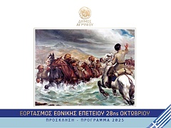 Π Ρ Ο Γ Ρ Α Μ Μ Α ΕΟΡΤΑΣΜΟΥ ΕΘΝΙΚΗΣ ΕΠΕΤΕΙΟΥ 28ης ΟΚΤΩΒΡΙΟΥ 1940 Γενικός σημαιοστολισμός Δημοσίων και Δημοτικών Καταστημάτων, ως και Καταστημάτων Νομικών Προσώπων Δημοσίου και Ιδιωτικού Δικαίου, Οργανισμών και Τραπεζών, από ώρα 8.00 το πρωί της 25ης Οκτωβρίου 2025 μέχρι τη δύση του ηλίου της 28ης Οκτωβρίου 2025 και φωταγώγηση αυτών κατά τις βραδινές ώρες της 27ης και 28ης Οκτωβρίου. Δευτέρα 27…
