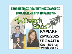 Την Κυριακή (19.10.25) στην πλατεία της Σπολάϊτας είχε προγραμματιστεί να πραγματοποιηθεί η 1η Γιορτή Ελιάς, μια γιορτή για τον τόπο, τη γη και τους ανθρώπους της, η οποία όμως αναβάλλεται λόγω καιρού. Το ΔΣ του Πολιτιστικού Συλλόγου Σπολάϊτας σύντομα πρόκειται να ανακοινώσει τη νέα ημερομηνία. Δείτε αναλυτικά την ανακοίνωση του Συλλόγου για την αναβολή της γιορτής: Ο Πολιτιστικός Σύλλογος…