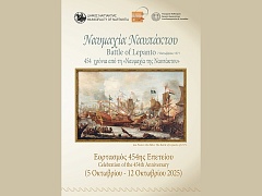 Ο Δήμος Ναυπακτίας ενημερώνει ότι, στο πλαίσιο των εκδηλώσεων για την 454η Επέτειο της Ιστορικής Ναυμαχίας της Ναυπάκτου, θα πραγματοποιηθεί η εικαστική έκθεση της Παρασκευής Τσιάρα-Τουμπάνου με τίτλο «ΕΠΑΧΤΟΣ-ΝΑΥΠΑΚΤΟΣ-LEPANTO, το χθες και το σήμερα». Η έκθεση θα φιλοξενηθεί στο Κτήριο Τσώνη, παραλία Ψανής, από 5 έως 12 Οκτωβρίου 2025, με ώρες λειτουργίας 17:00’ - 22:00’. Εμπνευσμένη από την…