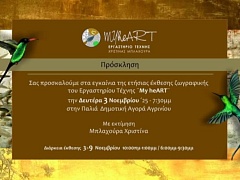 Πρόσκληση Σας προσκαλούμε στα εγκαίνια της ετήσιας έκθεσης ζωγραφικήςτου Εργαστηρίου Τέχνης "My heART" την Δευτέρα 3 Νοεμβρίου 2025 - 7:30 μμ στην Παλιά Δημοτική Αγορά Αγρινίου Με εκτίμησηΜπλαχούρα Χριστίνα Διάρκεια έκθεσης εως Κυριακή 9 Νοεμβρίου 10:00 πμ-1:00 μμ / 6:00 μμ-9:30 μμ