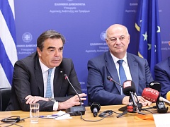Στην εξειδίκευση των μέτρων στήριξης του αγροτικού κόσμου προχώρησαν σήμερα ο Αντιπρόεδρος της Κυβέρνησης Κωστής Χατζηδάκης, ο Υπουργός Αγροτικής Ανάπτυξης και Τροφίμων Κώστας Τσιάρας, ο Υπουργός Ψηφιακής Διακυβέρνησης Δημήτρης Παπαστεργίου και ο Υφυπουργός Εθνικής Οικονομίας και Οικονομικών Θάνος Πετραλιάς, κατά τη διάρκεια συνέντευξης Τύπου που πραγματοποιήθηκε στα γραφεία του Υπουργείου…