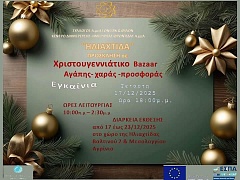 Χριστουγεννιάτικη εκδήλωση διοργανώνει ο Σύλλογος Φίλων Γονέων και Κηδεμόνων του Εργαστηρίου «Παναγία Ελεούσα» την Κυριακή 14 Δεκεμβρίου. Αναλυτικά η πρόσκληση: «Ο Σύλλογος Φίλων Γονέων και Κηδεμόνων του Εργαστηρίου Παναγία Ελεούσα σε συνεργασία με την Φιλαρμονική Δήμου Ι.Π. Μεσολογγίου προσκαλούν στην Χριστουγεννιάτικη εκδήλωση «Χριστούγεννα Αγάπης» που θα γίνει την Κυριακή 14 Δεκεμβρίου και ώρα…